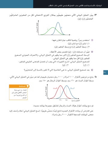 .مس 180 وه لاجرلا لاوطأ طسوو ،مس 160 وه ءاسنلا لاوطأ طسو .)ب( ،)أ( نيَلصتملا نيَّيئاوشعلا نيَريغتملا نم لكل يلامتحلاا عيزوتلا يتلآا ينايبلا ليثمتلا نّيبي )2 .يعيبط عيزوت تاذ نيَعونلا لاكل نيَتبلعلا نم لك يف ياشلا ةلتك