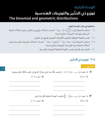 The binomial and geometric distributions ةعبارلا ةدحولا