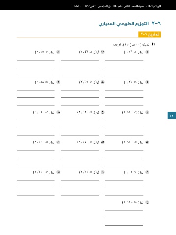 :ةيتلآا تلاامتحلاا دجوأ ،1 هنيابتو 0 هطسو اًيعيبط اًعيزوت )ز( يئاوشعلا ريغتملا عبتي )٢ يرايعملا يعيبطلا عيزوتلا ٢-٦