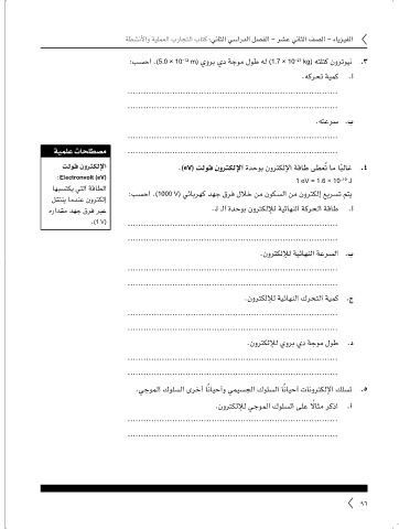 . .(2.0 m s ) ةعرسب يشمي (50 kg) هتلتك يماس .6(2.0 m s ) ةعرسب يشمي (50 kg) هتلتك يماس .6 تلوڤ نورتكللإا .(eV) تلوڤ نورتكللإا ةدحوب نورتكللإا ةقاط ىطعُت ام اًبلاغ .٤(eV) تلوڤ نورتكللإا ةدحوب نورتكللإا ةقاط ىطعُت ام اًبلاغ .٤