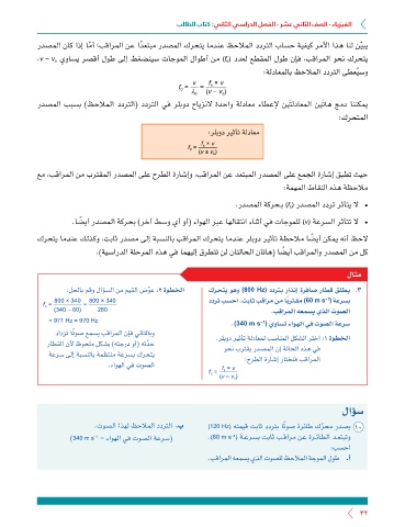 :ةلداعملاب ظحلاملا ددرتلا ىطعُيو ،(v s ) ةعرسب ردصملا كرحتي امدنع ظحلاملا ةجوملا ددرت يف رّيغتلا وه رلبود ريثأت .ءاوهلا يف توصلا f s × v