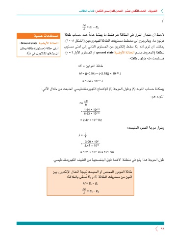 (10 –18 J) ةقاطلا مسر سايقم ىلع سيل hf = ((–0.54) – (–2.18)) × 10 –18 J