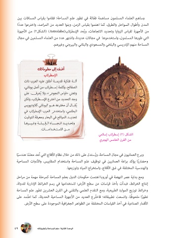 ةﺰﻬﺟﻷا ﻦﻣ (٢ﻞﻜﺸﻟا) (Astrolabe)بﻻﺮﻄﺳﻹا ﺪﻌﻳو ،تﺎﻫﺎﺠﺗﻻا ﺪﻳﺪﺤﺗو ﺎﻳاوﺰﻟا سﺎﻴﻘﻟ ةﺰﻬﺟﻷا ﻦﻣ