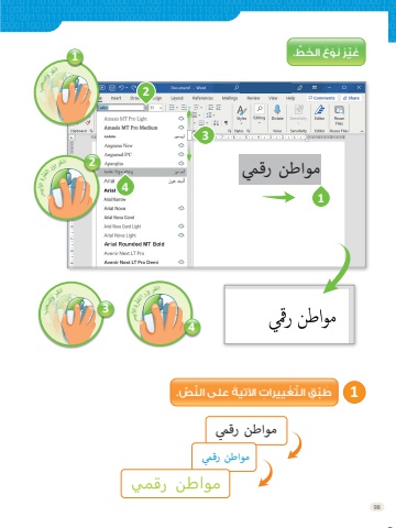 981ََغِي ْر َْن ْو ََع ال َخ ِْط.1َ طِب ِْق الََت َْغ ِ ييراِت اآلِتي َِة َعِلى الَن ِِّص.مواَط ي ن رقيممواَط ي ن رقيممواطن رقميمواَط ي ن رقيم324انقر واسحب1رس2 انقر بزر الفأرة ا يألرسانقر بزر الفأرة ا يأل4انقر واسحب3