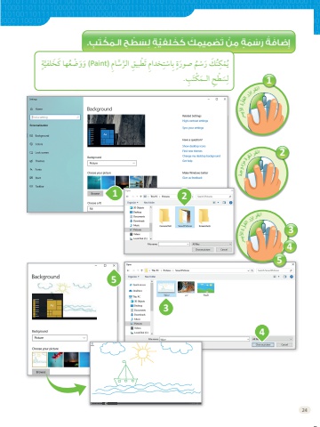 24رسانقر بزر الفأرة ا يأل1مزدوجة2 انقر نقرةرسانقر بزر الفأرة ا يأل3452534ِِإ َضاَف ُُة َْر ْس َُم ٍُة ِ ِم ْْن َ َت ْْص ِ ُمَّيُم ََك َ َك َخ َ لفَّي ٍُة ِل ََس ْْط ُِح الـ َُم ْكَت ِِب.ٍَُةَ َس ِاِم )Paintَ )وَو ْْضَُعها ََكََخُّلَفيَِخ ِداِمَت َّْط ِ بيِق الُرٍ ِبِا ْسَّتَُةصوَرَُ ْسِمِّن ََك َرُِْ ْكُُميَّت ِب.َْس َّْط ِِح الـَُم ْْكَِل1