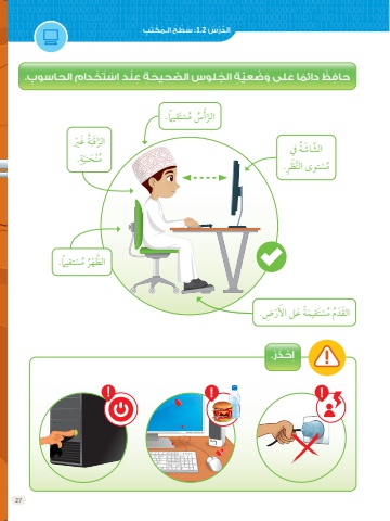 27! !َحا َِف ْْظ ِدائ ًُم َ ا َعلى َو ْضَعََّي ُِة ال ُِجلو ُِس ال َْصَحَّي ََح ُِة َِع ِّْن ََّد ِا ْسَت ْخَّد ِ اِم الَحاسو ُِب. َّتَقيااَّم.ْ َُْسُس َمْ ََُأالُرْ ِِض.َّتَقيَُماُة َعىل َ اَألَرْ َُْسِم َمَ الَقَدُْ َّتَقيااَّم.ُْسَمُظ ْهُرَالُة ََغ ْريَََُقبَالُرٍ.َُةُ ِّْن ََحِّنيَمُة يفَُ الَّش َ اَشِّنَظُِر.ْ َّتوى الَُْسَمِا َْح َذْْر.َ الَّدْْر ُُس 2.1َ :س ْْط ُُح الـ َُم ْكَت ِِب