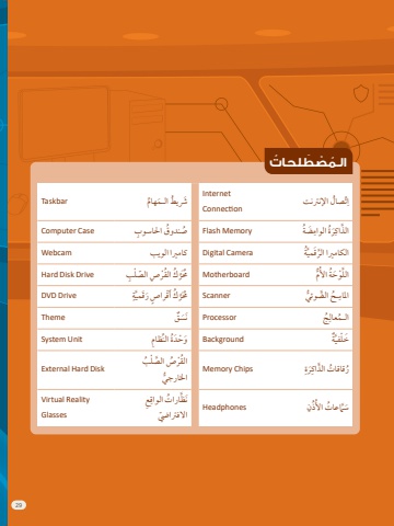 29ُ الـُم ْْص َْطُّل ُحاُتتَّصاُِل اِإلنرِتنُترِاInternetConnectionرَرَش ُ يُط الـ Taskbarَُ مهاِمََّضُُةَِ ُُة الواَمُرذاَك Memory Flashِ َُص Case Computerِّ ن ُ دوُق ِ احلاسوِب الَُُةالْكاَمريا الُر Camera Digitalَ كاَمريا الويب Webcamََ َ قُميُُِمُّل Motherboardْ و َْحُُة اَألَْ ُِص ال َّّصُّْل ِب الَُر Drive Disk Hard ر ُُك الَُقُرَُحُميَ الَّضوئ ٍُ املاس Scannerُِ ِ حَُةَُر Drive DVD ر ُُك َأَ َْقُرا ٍُصَ َرََقُميَُحُمُُجالـُمَعال Processorِ َن Themeَْ سٌِق َُو ْْح Unit Systemَ خُّْلَفي Backgroundَ دُُة الِّنر ِظاِم ٌَُةَِ ُةُرِذاَكََُر Chips Memoryَ قاَقا ُِت الَ الَّصُّْل ُبْ ُُصالَُقُرَرْجياخلا ُDisk Hard Externalُِ Headphonesُُ ذنَاَّمعا ُِت اَألِ ِِع َسظاَرا ُِت الواَقََناالُفرِت ّ اّيضReality VirtualGlasses