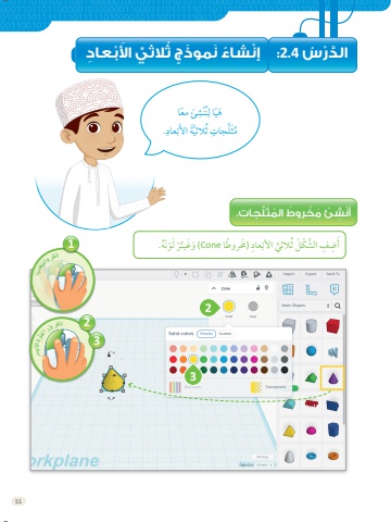 51َ ًَلِّج ِ اِت.َْن َِّش ْْئ َ َم ْْخَّر َوَط ال ًُمَثَأََئ ًُمَّعا ِنَّْشُنِّا َلَُهي.َِّْعادَّبَََِة اَألثالثيٍ َُّلجاٍتَثَُُم1ُه.َْْنُْ َلَوَرِِ )َخَم ً َرِوطا Coneَِ )وََغيـَّْعادَ اَألَّبثالثيَُّش َْكٌَلَ ِِض ِِّف اَلََأُ ِ الثِّي َ اَألْْبعا َِدِّدْْر ُُس4.2ِ ْ :إُن ُشاُء َُنِّم َوَذ ٍٍج ثال َ23انقر واسحب12 انقر بزر الفأرة األيرس3