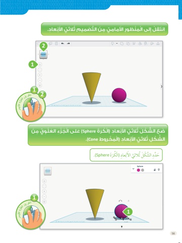 56ُال َ ُثُّي َ اَألْْب ِعاِد )اْل ُْكََّر ًَة Sphereَُ )عًلى اْل ُِّج ْْز ُِء ال ُع ًْل َِو ِِّي َِم َْنَِض ِِع َ الَّش ْْك َُل ُثُال ِ ُثُّي َ اَألْْب ِعاِد )اْل ًَم ْْخَّرو َِط Cone.)َ الَّش ْْك ُِل ُث1ٌََة Sphere.)َكَرُِ )اَْلَّْعادَ َ اَألَّبثالثيَُّش َْكٌَلِ اَلَُددَِحُال ِ ُثُّي َ اَألْْب ِعاِد.ِا َنَت َِق ُْل ِ ِإلى اْل ًَم ْنظ َِوْر َ اَألَما َِمُّي َِم َْن الََت ُّْصًم ِ يِم ُث12انقر بزر الفأرة األيرس12انقر بزر الفأرة األيرس1