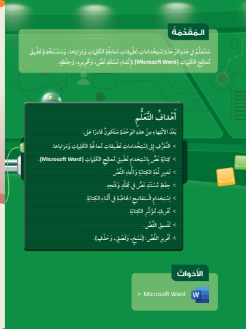 ُ َ َت ْْط َ بيَقُِمَت ْْخِدَت ْْسََ َ زاياها، َوََسَِ َ َوَمِامِتِ َ الَكِلُ َ عاَجَلِةِ َمِ َ َت ْْطبيقاِتْْخِداَماِتَِْسَتِاِِ َ الَو ْْحَِدِةُم يف َهذِهِلََُتَعَتَََسَ.ِِهِِ ْْفِظِ َ، َوْحٍّص َ، َوَْحَتِِْر ِيِرِهِ َ َن ٍَتَنَِدُ ْْسَِ َمِ )Word Microsoftِ ِ )إلَْنشاِءِامِتِِج َ الَكِلُِعالَمِّد ََم ُُةُ الـُم ََق َِ اَأل ََد ُ واُت Word Microsoft> ُ ُِمعِلََتاُف الَُهِدََْأا َعىل:ُن ً قادًر ََتَكَوَُ َسَِِ َ الَو ْْحَِدِةْْن هذِهِِ َمِهاِءَ ْعَِد االَْنَتَبِ ََوََمزاياها.امِتِِ ال ََكِلُعا ََجَلِةِ َمِ ََت ْْطبيقاِتْْخِداَماِتَِْسَتِِىل اِ إُ ُفَتَعِرالَِ )Word Microsoft.)امِتِِِج ال ََكِلُِعالِْخِداُِمََت ْْطبيَِق َمٍّصَبِا َْسَتََن ٍَِِةَتاَبِكٍّصَ ِِّ الَناجِّتاِهََِّوَِِةَتاَبِِ الَك لَغِةََُت ِ غيريِ .ِهٍِ ََوَفَْتحِلِدَُ َ يف جُمٍّصِ ََن ٍَتَنَِدُ ْْسَِ َمِ ْْفظْحِ .َِةَتاَبِِ الَكَْثَناِءِ يف َأَ اخلاصِةِْخِداُِم ْ ال َـمْفاَت ِ يحَْسَتِاِ .َِةَتاَبِِّ ِرِّش الَكُ َؤِ َمَْحَتِْريكٍّص.َ ِّْْسيَِق الَن ََتَنٍ (.ل ْصٍَق، ََو َْحْذُفٍّص: )ََن ْْس ٍخ، ََوََ َِّْحَتِْريِِر الَن