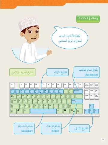 78َُمفاِت ُيُح ال َِكَت َاَب ِِة.ُم ِوِزُحلرَو ِِف ََواِلرُيُح اْ ِ قاِم َُمْفاَت ُيُح َ اَألَرِْل َخِْل َِف َُمْفاَت ٍُِ ِلُاُح َُم َساَفِةِ ْْفِتُم)Backspace)ُِاُح اِْلـَْم َ ـساَفِةِ ْْفِتُم)Spacebar)ُِاُح ِ اِإلْْدخاِلِ ْْفِتُم )Enter)ِرَوِفَُْر ِ قاِم َ َواحلَِ اَألَِةِتاِبِِِكِلِ اِْلـَْمْفاَتي ُِح.ِل ْو َحِةِىل َُاُج ِإََن ْْحِتِهِِميُح َ اَأل ْْسَُُمْفاَت ُ