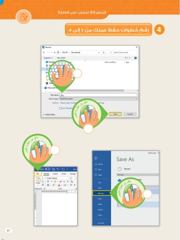 87رسانقر بزر الفأرة ا يألانقر بزر الفأرة األيرسرسانقر بزر الفأرة ا يأل4ََ ر ِِّق ْْم ُْخ ُْط ِواِت َِح ْف ِْظ َ َع َمِِل ََك ُِم ْن 1ِ ِ إلى 4.ال َدَْر ُُس 3.3ِ :لَن ََت َدََر ْْب َ َعِلى ال َِكَت َاَب ِِة