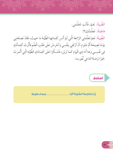 .ًﻼﻳ ِ ﻮ َ ﻃ ُ مو ُ ﺪَﻳ اًﺮﺛأ ِ ﺔَﺒﱢﻴ ﱠ ﻄﻟا ِ ﺔﻤِﻠ َ ﻜْﻠِﻟ ﱠ نِإ