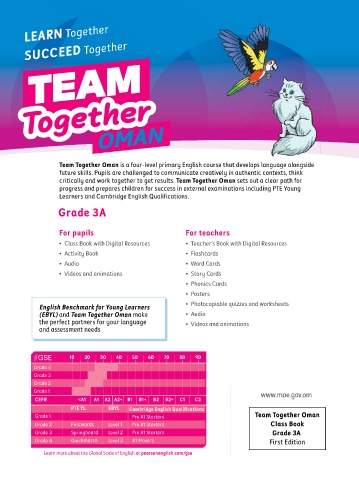 Team Together Oman is a four r -lev el prima ry English c ou rs e that dev elop s language alongside