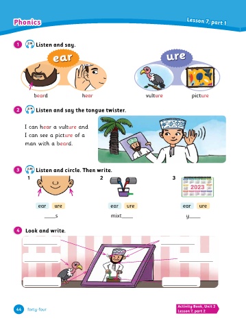 Phonics e e s e v p m y a s s s s Our p n k k c c p ear Your l r t a o c v e a g hear Their Lesson 8, part 2 Activity Book, Unit 2 2 ear ure 9 4 vulture 8 3 ure ear picture 1 6 3 1 Down Across Look and write. Look, find and circle. 1 3 2 Lesson 8, part 1 Lesson 7, part 1 Lesson 8, part 1 Lesson 7, part 1 3 3 cap. picture 7 ear y Lesson 7, part 2 Activity Book, Unit 2 We’re You’re ure