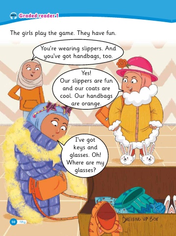 2 2 Graded reader 1 cool. Our handbags They’re on your head. Can you see the glasses? Can you see the glasses? This game is �un. you’ve got handbags, too. You’re wearing slippers. And fifty-onefifty Graded reader 1 2 GR2.1 The girls play the game. They have �un.