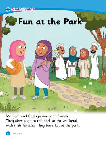 72 73 72 73 72 73 72 73 3 Graded reader 1 Graded reader 1 OK, Maryam! Badriya plays tennis. The girls have �un. Maryam plays bas�etball and rac�et and a tennis ball. has got a bas�etball and Badriya has got a tennis Today is Friday and the girls are at the par�. Maryam Badriya plays tennis. Graded reader 1 Fun at the Par� Graded reader 1 3 GR3.1 with their �amilies. They have �un at the par�. They always go to the par