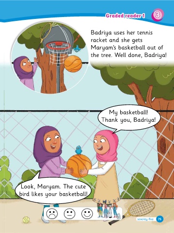 74 75 74 75 74 75 74 75 Graded reader 1 My bas�etball! Oh, no! My bas�etball Loo�, Maryam. The cute bird li�es your bas�etball! bird li�es your bas�etball! the tree. Well done, Badriya!