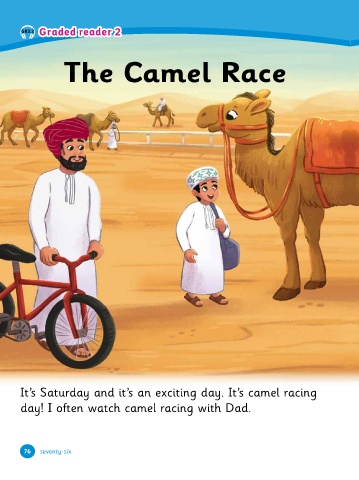 7677 7677 7677 7677 3 Graded reader 2 Graded reader 2 name is Farha. Yes, she does! Her run �ast? Does your camel I see a cute camel with long legs and big eyes. have got long hair. We see lots o� camels. The camels are brown and they I see a cute camel with long legs and big eyes. The Camel Race Graded reader 2 3 GR3.2 day! I o�ten watch camel racing with Dad. It’s Saturday and it’s an exciting day. It’s camel racing