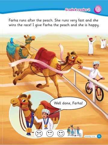 3 Graded reader 2 Graded reader 2 Well done, Farha! Come on, Farha! wins the race! I give Farha the peach and she is happy. Farha runs a�ter the peach. She runs very �ast and she wins the race! I give Farha the peach and she is happy. Farha runs �ast, too. But then she stops. Come on, Farha! Well done, Farha! seventy-nine seventy-eight 3 Graded reader 2 79 78 79 78 GR3.2 the peach and she runs again. my bi�e to Farha. She sees peach �rom Dad and I ride