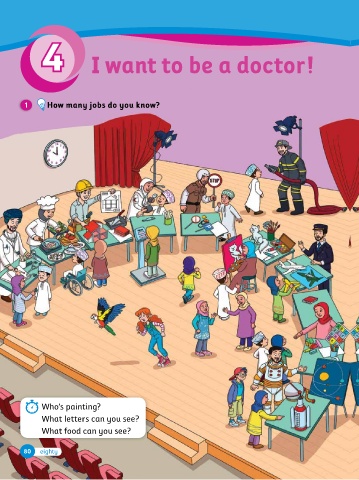 4 I want to be a doctor! 2 2 4.1 4.2 Listen and stick. Then listen and say. I want to be a doctor! 4