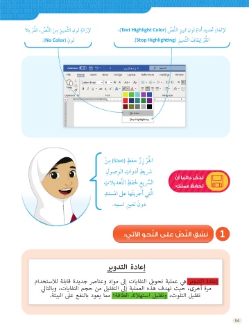 لاب رُقنا ، ِّ صَّنلا َ نم زييمَّتلا نول ةلازلإ ،)Text Highlight Color( ِّ صَّنلا زييتم نول ةادأ ديدتح ءاغللإ