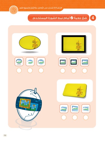 ِرو ُّ صلا ِ قيسنتو ِّ ص َّ نلا َ عم ِ ل ُ ماع َّ تلا ىلع ْ بَّرد َ ت َ نِل :2.4 ُ سْر َّ دلا َ . ِ م َ دختسملا ِ ةرو ُّ صلا ِ طمن َ مامأ ةملاع ْ ع َ ض 4 ُ 73