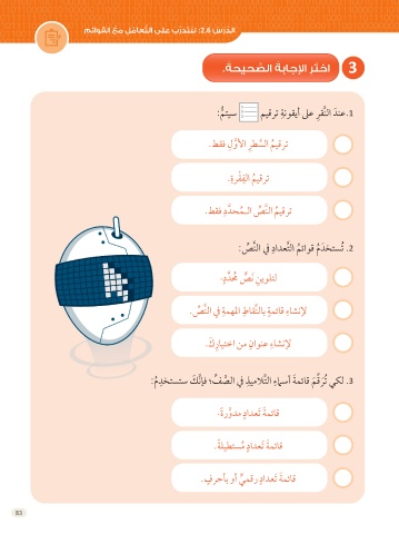 .ةحيح َّ صلا ةباجلإا ِرَتخا 3