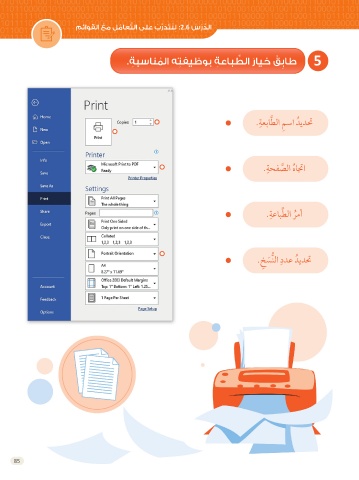 ِ مئاوقلا َ عم ِ ل ُ ماع َّ تلا ىلع ْ بَّر َ د َ ت َ نِل :2.6 ُ سْر َّ دلا . ِ ةبسانملا هِتفيظوب ِ ةعاب ِّ طلا َرايخ ْ قِباط 5 ُ ِ .ةعباَّطلا ِمسا ُديدتح ِ .ةحفصلا هاتجا ُ َّ ِ .ةعابِّطلا رمأ ُ ِ . ِ خسُّنلا ددع ُديدتح َ 85 85