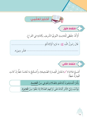 Page 70 - ديني حياتي للصف 3 الفصل 1 الجزء 1