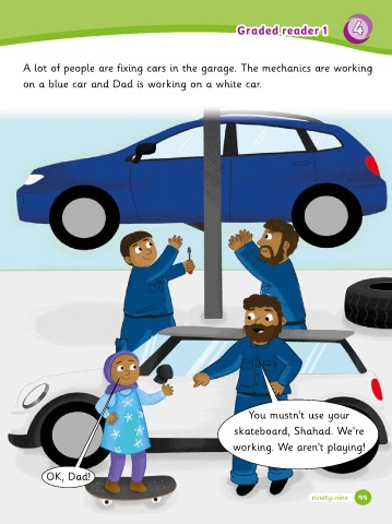 A lot o� people are �ixing cars in the garage. The mechanics are wor�ing