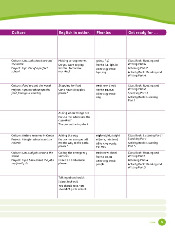 1 Culture: Unusual schools around Making arrangements y (my, fly) Class Book: Reading and