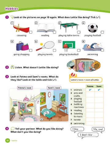 1 Look at the pictures on page 10 again. What does Lottie like doing? Tick (✓).
