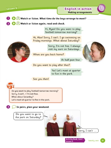 1 1.10 Watch or listen. What time do the boys arrange to meet?