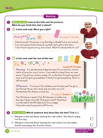1 Maryam is worried about starting her new school. She doesn’t enjoy