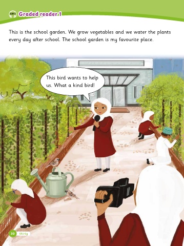 Graded reader 1 Graded r eader 1 GR1.1 This is the school garden. We grow vegetables and we water the plants every day a�ter school. The school garden is my �avourite place. This bird wants to help us. What a �ind bird! 30 thirty
