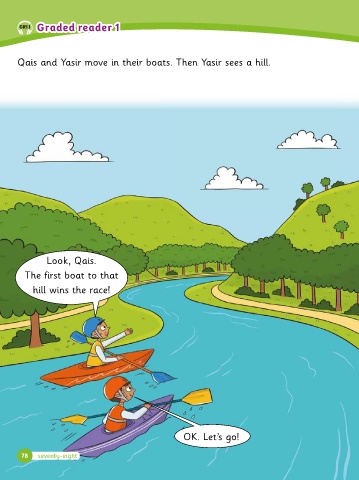 Graded r Graded reader 1 eader 1 GR1.1 Qais and Yasir move in their boats. Then Yasir sees a hill. Loo�, Qais. The �irst boat to that hill wins the race! OK. Let’s go! 78 seventy-eight