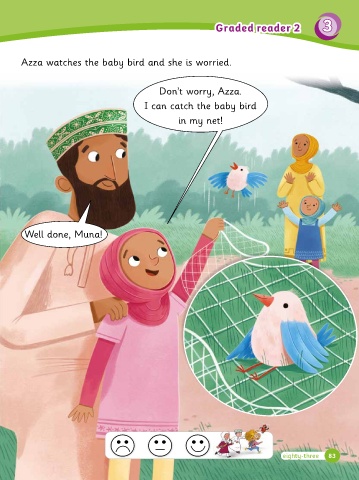 Graded r eader 2 3 3 Graded reader 2 Azza watches the baby bird and she is worried. Don’t worry, Azza. I can catch the baby bird in my net! Well done, Muna! eighty-three 83