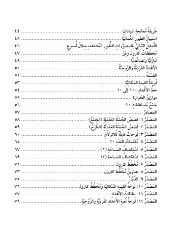 ِ ِ البيانات ................................................................. 44 معالجةريقةَُُطِ ................................................................. 45َّةُ استبيان ِ الطيور ُ العمانيُ ٍ سبوع ............................. 46ِ ِ خ َالل أُ المشاهدة للط ِ يورُّي ّ بالمصو ِ راتَُِّانَيمثيل البُالتَِّ ْن ................................................................. 47خط ُ طات كارول وفَّمًُّا ....................................................................... 49ًّ ُ ا وتصاعدينازليُتَة ............................................................... 50َُّة َّ والز ِوجيَُِّيْدُداد َ الفرْعَاألة................................................................................. 51ُْسَمِالقِ ................................................................... 53َّةيِِ َ المكانِيمةة القَُ َوحلِ -10 إلى 10 ..............................................................54خط ْ األعدادُِّ ........................................................................ 55ُ موازين َ الحرارة م َضاع ِ فات 10 ................................................................... 56ُعَُج ْمَ الم ُصادر ............................................................................... 57ع( ........................................... 58ُِ َ )الج ْمَّةِيِ َ العَددَةُ الج ْملصُِ َصر 1 :قَ الم ْصَدُح(............................................ 59ْ ُ )الطرِ ََّّةِيِ َ العَددَةُ الج ْملصُِ َصر 2 :قَ الم ْصَدُة ِ لالنزالق ..................................................... 60ٌَر 3 : ٌ لوحات قابِلَ الم ْصَدُِ 20 ......................................................... 65ُ مات َ العَددمِّ: مَتر 4ُ َ الم ْصَدُِ )1 ................................................... )67كشاف َ الم َساحةِ ُر 5 : ْ استَ الم ْصَدُِ )2 ................................................... )69كشاف َ المساحةِ ُر 6 : ْ استَ الم ْصَدُط كارول ............................................................. 71ُطَّ: مَخر 7ُ َ الم ْصَدُط ِط كارول ..................................................... 73َّ مَخر 8 : ُ عناوين َُ الم ْصَدُُار ..................................................................... 75وَّ : الدَّر 9َ الم ْصَدُط كارول..................................... 76ُطَّمَخُِ َ وَّةيِِ َ المكانِيمةة القُر 10 : َ لوحَ الم ْصَدُِ .......................................................... 77ْعدادَر 11 :بِ ُ طاقات األَ الم ْصَدُِ....................................... 79َّةِ َّ والزْو ِجيَّةِيِ َ الفردَعدادِ األعبةُ: لوحة لُر 12َ الم ْصَدُِ ِ البيانات ................................................................. 44 معالجةريقةَُُطِ ................................................................. 45َّةُ استبيان ِ الطيور ُ العمانيُ ٍ سبوع ............................. 46ِ ِ خ َالل أُ المشاهدة للط ِ يورُّي ّ بالمصو ِ راتَُِّانَيمثيل البُالتَِّ ْن ................................................................. 47خط ُ طات كارول وفَّمًُّا ....................................................................... 49ًّ ُ ا وتصاعدينازليُتَة ............................................................... 50َُّة َّ والز ِوجيَُِّيْدُداد َ الفرْعَاألة................................................................................. 51ُْسَمِالقِ ................................................................... 53َّةيِِ َ المكانِيمةة القَُ َوحلِ -10 إلى 10 ..............................................................54خط ْ األعدادُِّ ........................................................................ 55ُ موازين َ الحرارة م َضاع ِ فات 10 ................................................................... 56ُعَُج ْمَ الم ُصادر ............................................................................... 57ع( ........................................... 58ُِ َ )الج ْمَّةِيِ َ العَددَةُ الج ْملصُِ َصر 1 :قَ الم ْصَدُح(............................................ 59ْ ُ )الطرِ ََّّةِيِ َ العَددَةُ الج ْملصُِ َصر 2 :قَ الم ْصَدُة ِ لالنزالق ..................................................... 60ٌَر 3 : ٌ لوحات قابِلَ الم ْصَدُِ 20 ......................................................... 65ُ مات َ العَددمِّ: مَتر 4ُ َ الم ْصَدُِ )1 ................................................... )67كشاف َ الم َساحةِ ُر 5 : ْ استَ الم ْصَدُِ )2 ................................................... )69كشاف َ المساحةِ ُر 6 : ْ استَ الم ْصَدُط كارول ............................................................. 71ُطَّ: مَخر 7ُ َ الم ْصَدُط ِط كارول ..................................................... 73َّ مَخر 8 : ُ عناوين َُ الم ْصَدُُار ..................................................................... 75وَّ : الدَّر 9َ الم ْصَدُط كارول..................................... 76ُطَّمَخُِ َ وَّةيِِ َ المكانِيمةة القُر 10 : َ لوحَ الم ْصَدُ