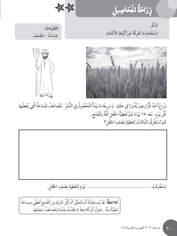 الوحدة 1أ: 3 الضرب والقسمة )1)ي يَغ ّط َيها ِ ُ التَّةَُس َ احِف ا ْملت َض َاع ُولِيف النُُّمّو َ . تَُصُ ا َْمل ْحَْدأَُبَا يِ ًيعا مِ َ . وَسهِِيف َ حْقلذ ًورا ُ بُِ َنِعملَزارد ا ُُْع أَ َحَُ ْزَريِ ْالَق ْم ِح .ه بلُِّ كُْق ِلَة ا ْحلَُيِمَ ت ْغطًُِّ َ ا تتَ ْومَ ْعد 17 يَ ْوٍم . بل يَّكُْق ِل؟َف احلْص ِِِ نَةيِت ْغطََِ َات ُ ات لبق النَِّ ُت ْغرَك ْمَ ت ْسَْق ِل.َف احلْص ِِِ نَةيِت ْغطََِ ْوم لت ْغَرَق ْت .......................................... يْسَِاَس َ �احًةِ تَغ ّطي مَُن ْ الَق ْم ِحٍِ مَةل ُ حْزمَّ كُنََّل أَ َّت َخيد َك أَ ْنَ تَُِ يَس�اعُة: َق ْدٌُ َالح َظمُمَها .ف َ ح ْجت َض َاع َََُا ينَْدمِث عُدَُْا َحيِ َظ م تَالحُِ ْل أَ ْنه َ . حاونُِْنًَة مَُّ َعيميلِِحاص امل ََةُاعَرَِزكر ََّتَذ.َِ ْعَدادِ األَ�طْنه َ ع ْن أَفَُُِ َ ا ت ْعرْم مِت ْخدْسَِاُ ات:المْفَرَدُفة ِّ - الض ْع َُُس َ احِاملالوحدة 1أ: 3 الضرب والقسمة )1)ي يَغ ّط َيها ِ ُ التَّةَُس َ احِف ا ْملت َض َاع ُولِيف النُُّمّو َ . تَُصُ ا َْمل ْحَْدأَُبَا يِ ًيعا مِ َ . وَسهِِيف َ حْقلذ ًورا ُ بُِ َنِعملَزارد ا ُُْع أَ َحَُ ْزَريِ ْالَق ْم ِح .ه بلُِّ كُْق ِلَة ا ْحلَُيِمَ ت ْغطًُِّ َ ا تتَ ْومَ ْعد 17 يَ ْوٍم . بل يَّكُْق ِل؟َف احلْص ِِِ نَةيِت ْغطََِ َات ُ ات لبق النَِّ ُت ْغرَك ْمَ ت ْسَْق ِل.َف احلْص ِِِ نَةيِت ْغطََِ ْوم لت ْغَرَق ْت .......................................... يْسَِاَس َ �احًةِ تَغ ّطي مَُن ْ الَق ْم ِحٍِ مَةل ُ حْزمَّ كُنََّل أَ َّت َخيد َك أَ ْنَ تَُِ يَس�اعُة: َق ْدٌُ َالح َظمُمَها .ف َ ح ْجت َض َاع َََُا ينَْدمِث عُدَُْا َحيِ َظ م تَالحُِ ْل أَ ْنه َ . حاونُِْنًَة مَُّ َعيميلِِحاص امل ََةُاعَرَِزكر ََّتَذ.َِ ْعَدادِ األَ�طْنه َ ع ْن أَفَُُِ َ ا ت ْعرْم مِت ْخدْسَِاُ ات:المْفَرَدُفة ِّ - الض ْع َُُس َ احِاملالوحدة 1أ: 3 الضرب والقسمة )1 )20ي يَغ ّط َيها ِ ُ التَّةَُس َ احِف ا ْملت َض َاع ُولِيف النُُّمّو َ . تَُصُ ا َْمل ْحَْدأَُبَا يِ ًيعا مِ َ . وَسهِِيف َ حْقلذ ًورا ُ بُِ َنِعملَزارد ا ُُْع أَ َحَُ ْزَريِ ْالَق ْم ِح .ه بلُِّ كُْق ِلَة ا ْحلَُيِمَ ت ْغطًُِّ َ ا تتَ ْومَ ْعد 17 يَ ْوٍم . بل يَّكُْق ِل؟َف احلْص ِِِ نَةيِت ْغطََِ َات ُ ات لبق النَِّ ُت ْغرَك ْمَ ت ْسَْق ِل.َف احلْص ِِِ نَةيِت ْغطََِ ْوم لت ْغَرَق ْت .......................................... يْسَِاَس َ �احًةِ تَغ ّطي مَُن ْ الَق ْم ِحٍِ مَةل ُ حْزمَّ كُنََّل أَ َّت َخيد َك أَ ْنَ تَُِ يَس�اعُة: َق ْدٌُ َالح َظمُمَها .ف َ ح ْجت َض َاع َََُا ينَْدمِث عُدَُْا َحيِ َظ م تَالحُِ ْل أَ ْنه َ . حاونُِْنًَة مَُّ َعيميلِِحاص امل ََةُاعَرَِزكر ََّتَذ.َِ ْعَدادِ األَ�طْنه َ ع ْن أَفَُُِ َ ا ت ْعرْم مِت ْخدْسَِاُ ات:المْفَرَدُفة ِّ - الض ْع َُُس َ احِاملالوحدة 1أ: 3 الضرب والقسمة )1 )20َُغ ّط َيها ِي ي التَّةَُس َ احِف ا ْملت َض َاع ُولِيف النُُّمّو َ . تَُصُ ا َْمل ْحَْدأَُبَا يِ ًيعا مِ َ . وَسهِِيف َ حْقلذ ًورا ُُِ َن بِعملَزارد ا ُُْع أَ َحَُ ْزَريِ ْالَق ْم ِح .ه بلُِّ كُْق ِلَة ا ْحلَُيِمَ ت ْغطًُِّ َ ا تتَ ْومَ ْعد 17 يَ ْوٍم . بل يَّكُْق ِل؟َِ احلْصفِِ نَةيِت ْغطََِ َات ُ ات لبق النَِّ ُت ْغرَك ْمَ ت ْسَْق ِل.َِ احلْصفِِ نَةيِت ْغطََِ ْوم لَ َق ْت .......................................... يت ْغرْسَِاَس َ �احًةِ تَغ ّطي مَُن ْ الَق ْم ِحٍِ مَةل ُ حْزمَّ كُنََّل أَ َّت َخيد َك أَ ْنَ تَُُِ َس�اعة: َق ْد يٌُ َالح َظمُمَها .ف َ ح ْجت َض َاع َََُا ينَْدمِث عُدَُْا َحيِ َظ م تَالحُِ ْل أَ ْنه َ . حاونُِْنًَة مَُّ َعيميلِِحاص امل ََةُاعَرَِزكر ََّتَذ.َِ ْعَدادِ األَ�طْنه َ ع ْن أَفَُُِ َ ا ت ْعرْ مِمت ْخدْسَِاُ ات:َ َدالمْفرُفة ِّ - الض ْع َُُس َ احِاملالوحدة 1أ: 3 الضرب والقسمة )1)2ي يَغ ّط َيها ِ ُ التَّةَُس َ احِف ا ْملت َض َاع ُولِيف النُُّمّو َ . تَُصُ ا َْمل ْحَْدأَُبَا يِ ًيعا مِ َ . وَسهِِيف َ حْقلذ ًورا ُ بُِ َنِعملَزارد ا ُُْع أَ َحَُ ْزَر