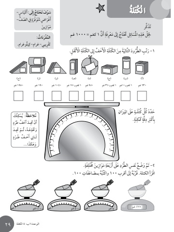 الوحدة 1ب: 4 الكتلة 29ُ َكنِي ْمكُة: ٌُ َالح َظمٍف َ طْردَِّ َ�د أََخأَ ْن َجتِ َ�د، ث ّ�م َجتُ�هِ َف َُوَحتْذٍِّ �ف َ ط ْ�ردث�انِ أَ َخََوَه َكَذا...َ ٍ اس- لى: أَ ْكيَُِاج إتَسْو َفَ ت ْحٍَِيف ّ الص ِّف- تَوّفَرةَُأَ ْغَر ٍ اض مِ َ ينََوازمَِيزانٍِ َ عَى امل كْتَل�ةُلَّ كَُحّد ْد.ٍنَةِْكممٍُقةَِِّ دَ ْكَربِأب.ٍَفةِتلَْخمُِ َ ينََوازِ مََعةْربِ َ عَى أَ الطْردَّعَ ن ِ فسم َ و ْضُ2 -َ تَِّ 100.ه َ بمض َاعَفاتُْتبه إَىل ِ أقرب 100 ْ واكُُْربِ َ الكتلة. قِّْاقَرأ١ كغم٤٠٠غم٢٠٠غم٢ كغم٠٠غم٨٠٠غم٢٠٠غم٦٠٠غم ٤٠٠غم٨٠٠غم٦٠٠غم٩٠٠غم٩٠٠ غم١٠٠غم ٣٠٠غم٧٠٠غم٣٠٠غم ١٠٠غم٥٠٠غم٧٠٠غم٥٠٠غم)أ(630 غمَْثَق ِل.ِ اْألِ ُ ىل الكْتَلةِّف إََخِ اْألُ الكْتَلةَنََِة ميِ التالَّر َود الطُُّ1 -َ رّت ِبُ ات:المْفَرَدُيلوغرام.ِ ُِ يبي- غرام- كَتْقرلةُتا ل ُكَْكر ََّتَذن 1 كغم = 1000 غمِ أَ َِّ َفةَ ْعرَِىل مُاج إتِل َحتَِْ ا َْملَسائِ هّل َ هذَِحل)ب(1 كغم و10غم)ج(1 كغم و360 غم)د(950 غم )ه�(1 كغم و170 غم)و(1040 غم)ز(190 غم)ح(1980 غم . . . 2 غم غم 500غم غم 1000غم غم غمالوحدة 1ب: 4 الكتلة 29ُ َكنِي ْمكُة: ٌُ َالح َظمٍف َ طْردَِّ َ�د أََخأَ ْن َجتِ َ�د، ث ّ�م َجتُ�هِ َف َُوَحتْذٍِّ �ف َ ط ْ�ردث�انِ أَ َخََوَه َكَذا...َ ٍ اس- لى: أَ ْكيَُِاج إتَسْو َفَ ت ْحٍَِيف ّ الص ِّف- تَوّفَرةَُأَ ْغَر ٍ اض مِ َ ينََوازمَِيزانٍِ َ عَى امل كْتَل�ةُلَّ كَُحّد ْد.ٍنَةِْكممٍُقةَِِّ دَ ْكَربِأب.ٍَفةِتلَْخمُِ َ ينََوازِ مََعةْربِ َ عَى أَ الطْردَّعَ ن ِ فسم َ و ْضُ2 -َ تَِّ 100.ه َ بمض َاعَفاتُْتبه إَىل ِ أقرب 100 ْ واكُُْربِ َ الكتلة. قِّْاقَرأ١ كغم٤٠٠غم٢٠٠غم٢ كغم٠٠غم٨٠٠غم٢٠٠غم٦٠٠غم ٤٠٠غم٨٠٠غم٦٠٠غم٩٠٠غم٩٠٠ غم١٠٠غم ٣٠٠غم٧٠٠غم٣٠٠غم ١٠٠غم٥٠٠غم٧٠٠غم٥٠٠غم)أ(630 غمَْثَق ِل.ِ اْألِ ُ ىل الكْتَلةِّف إََخِ اْألُ الكْتَلةَنََِة ميِ التالَّر َود الطُُّ1 -َ رّت ِبُ ات:المْفَرَدُيلوغرام.ِ ُِ يبي- غرام- كَتْقرلةُتا ل ُكَْكر ََّتَذن 1 كغم = 1000 غمِ أَ َِّ َفةَ ْعرَِىل مُاج إتِل َحتَِْ ا َْملَسائِ هّل َ هذَِحل)ب(1 كغم و10غم)ج(1 كغم و360 غم)د(950 غم )ه�(1 كغم و170 غم)و(1040 غم)ز(190 غم)ح(1980 غم . . . 2 غم غم 500غم غم 1000غم غم غمالوحدة 1ب: 4 الكتلة 29ُ َكنُِ ْمكة: يٌُ َالح َظمٍْدف َ طرَِّ َ�د أََخأَ ْن َجتِ َ�د، ث ّ�م َجتُ�هِ َف َُوَحتْذٍْدِّ �ف َ ط�رث�انِ أَ َخََوَه َكَذا...َ ٍ اس- لى: أَ ْكيَُِاج إتَسْو َفَ ت ْحٍَِيف ّ الص ِّف- َ ةتَوّفرََُ ٍ اض مأَ ْغرِ َ ينََوازمَِيزانٍِ َ عَى امل كْتَل�ةُلَّ كَُحّد ْد.ٍنَةِْكممٍُقةَِِّ دَ ْكَربِأب.ٍَفةِتلَْخمُِ َ ينََوازِ مََعةْ بِ َ عَى أَرْد الطرَّعَ ن ِ فسم َ و ْضُ2 -َ تَِّ 100.ه َ بمض َاعَفاتُْتبه إَىل ِ أقرب 100 ْ واكُُْبِِّ َ الكتلة. قرَ أْاقر١ كغم٤٠٠غم٢٠٠غم٢ كغم٠٠غم٨٠٠غم٢٠٠غم٦٠٠غم ٤٠٠غم٨٠٠غم٦٠٠غم٩٠٠غم٩٠٠ غم١٠٠غم ٣٠٠غم٧٠٠غم٣٠٠غم ١٠٠غم٥٠٠غم٧٠٠غم٥٠٠غم)أ(630 غمَْثَق ِل.ِ اْألِ ُ ىل الكْتَلةِّف إََخِ اْألُ الكْتَلةَنََِة ميِ التالَُّ َود الطرَُّ ّت ِب1 -رُ ات:َ َدالمْفرُيلوغرام.ِ ُِ يبي- غرام- كَتْقرلةُتا ل ُكَْكر ََّتَذن 1 كغم = 1000 غمِ أَ َِّ َفةَ ْعرَِىل مُاج إتِل َحتَِْ ا َْملَسائِ هّل َ هذَِحل)ب(1 كغم و10غم)ج(1 كغم و360 غم)د(950 غم )ه�(1 كغم و170 غم)و(1040 غم)ز(190 غم)ح(1980 غم . . . 2 غم غم 500غم غم 1000غم غم غمالوحدة 1ب: 4 الكتلة 29ُ َكنُِ ْمكة: يٌُ َالح َظمٍْدف َ طرَِّ َ�د أََخأَ ْن َجتِ َ�د، ث ّ�م َجتُ�هِ َف َُوَحتْذٍْدِّ �ف َ ط�رث�انِ أَ َخََوَه َكَذا...َ ٍ اس- لى: أَ ْكيَُِاج إتَسْو َفَ ت ْحٍَِيف ّ الص ِّف- َ ةتَوّفرََُ ٍ اض مأَ ْغرِ َ ينََوازمَِيزانٍِ َ عَى امل كْتَل�ةُلَّ كَُحّد ْد.ٍنَةِْكممٍُقةَِِّ دَ ْكَربِأب.ٍَفةِتلَْخمُِ َ ينََوازِ مََعةْ بِ َ عَى أَرْد الطرَّعَ ن ِ فسم َ و ْضُ2 -َ تَِّ 100.ه َ بمض َاعَفاتُْتبه إَىل ِ أقرب 100 ْ واكُُْبِِّ َ الكتلة. قرَ أْاقر١ كغم٤٠٠غم٢٠٠غم٢ كغم٠٠غم٨٠٠غم٢٠٠غم٦٠٠غم ٤٠٠غم٨٠٠غم٦٠٠غم٩٠٠غم٩٠٠ غم١٠٠غم ٣٠٠غم٧٠٠غم٣٠٠غم ١٠٠غم٥٠٠غم٧٠٠غم٥٠