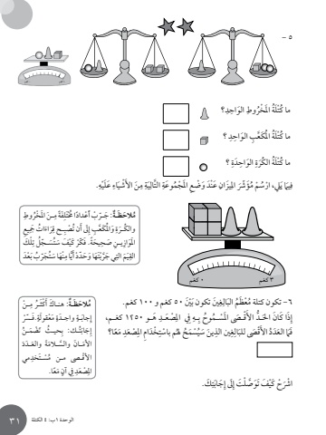 الوحدة 1ب: 4 الكتلة 31ِروطِ َ �ن َ امل ْخَُفًة مِتلَْخمُ�ة: َج ّ�ر ْب أَ ْع ًدادا ٌُ َالح َظمِ ِ يعَ ُ ات َ جَراءِِ�ح قن ت ْصبَِىل أَ ُامل َكَّع ِب إَُ وُِ والك َ�رةْل َكِل تُتَس ّ �جْ َف َ سُِ َ يحًة َ. ف ّكْر َ كيِ ِ ي�ن َ صحاَملَوازَ ْعَدب بُت َجّرنَْه َ ا سًُِّا متَه َ ا و َحّد ْد أَيَْربَِّ َي جَ َم التيِالق5 - ِ ؟ ِ دِ َ الواحروطة َ امل ْخُُما كْتَلُِ ؟ ِ دع ِب َ الواح امل َكَُّةُما كْتَلُِ ؟ ِ َدةِ َ الواحُ الكَرةةُما كْتَلُِ. ْهِ َ عَليَاءَ ْشيَن األِِ مَةيِ التالِ َُّم َوعةِ َ عنَْد َ و ْض ِع َ امل ْجَيزانَِ املَُؤ ّرشَل ِ ْ ، ارُس ْم مَ� ييِفَ ْنَ 50 كغم و 100 كغم. ِ َن تكون بغَِالم البُ ْع َظُ6 -تكون كتلة مِ َ ه�و 1250 كغ�م،ْصَع�دِِ ِيف املِ�هوح بَْق� َ� َ امل ْس ُ�م ُ�د األَ َُِّذ َ ا ك َ ان احلإَ ًعا؟ ِ مْصَعدِِ ْخَد ِام املُ ْ م باستح هلي ْسَم ُِ َ ين َ سُِن الذغَِالَْق َ� للبد األُ العَدَ� ََفِ َك.َتِ َجابَِىل إصْل َت إَّْ َفَ تَوَ ْح َ كيا ْرشِ ْ �ن�ر مث ُ�ة: َ هن�اك أَ ْكٌَُ َالح َظمٍ َ.ف ّ ْ �رسَ ْع َ قولةٍ مِ َ�دةٍ واحَ�ةِجابإ�نحي�ث َ ت ْضَم ُِ ُت�ك: بَُِ َجابإََة َ والع َ�دَدَ َ �ان َّ والس�الماألمِ مي ُ ْس َ�تخدْ األق�� م�ن مَ ًعا.ٍ مِ ِيف آنْصَعدِامل١ كغم ٠ كغم3 كغم 0 كغمالوحدة 1ب: 4 الكتلة 31ِروطِ َ �ن َ امل ْخَُفًة مِتلَْخمُ�ة: َج ّ�ر ْب أَ ْع ًدادا ٌُ َالح َظمِ ِ يعَ ُ ات َ جَراءِِ�ح قن ت ْصبَِىل أَ ُامل َكَّع ِب إَُ وُِ والك َ�رةْل َكِل تُتَس ّ �جْ َف َ سُِ َ يحًة َ. ف ّكْر َ كيِ ِ ي�ن َ صحاَملَوازَ ْعَدب بُت َجّرنَْه َ ا سًُِّا متَه َ ا و َحّد ْد أَيَْربَِّ َي جَ َم التيِالق5 - ِ ؟ ِ دِ َ الواحروطة َ امل ْخُُما كْتَلُِ ؟ ِ دع ِب َ الواح امل َكَُّةُما كْتَلُِ ؟ ِ َدةِ َ الواحُ الكَرةةُما كْتَلُِ. ْهِ َ عَليَاءَ ْشيَن األِِ مَةيِ التالِ َُّم َوعةِ َ عنَْد َ و ْض ِع َ امل ْجَيزانَِ املَُؤ ّرشَل ِ ْ ، ارُس ْم مَ� ييِفَ ْنَ 50 كغم و 100 كغم. ِ َن تكون بغَِالم البُ ْع َظُ6 -تكون كتلة مِ َ ه�و 1250 كغ�م،ْصَع�دِِ ِيف املِ�هوح بَْق� َ� َ امل ْس ُ�م ُ�د األَ َُِّذ َ ا ك َ ان احلإَ ًعا؟ ِ مْصَعدِِ ْخَد ِام املُ ْ م باستح هلي ْسَم ُِ َ ين َ سُِن الذغَِالَْق َ� للبد األُ العَدَ� ََفِ َك.َتِ َجابَِىل إصْل َت إَّْ َفَ تَوَ ْح َ كيا ْرشِ ْ �ن�ر مث ُ�ة: َ هن�اك أَ ْكٌَُ َالح َظمٍ َ.ف ّ ْ �رسَ ْع َ قولةٍ مِ َ�دةٍ واحَ�ةِجابإ�نحي�ث َ ت ْضَم ُِ ُت�ك: بَُِ َجابإََة َ والع َ�دَدَ َ �ان َّ والس�الماألمِ مي ُ ْس َ�تخدْ األق�� م�ن مَ ًعا.ٍ مِ ِيف آنْصَعدِامل١ كغم ٠ كغم3 كغم 0 كغمالوحدة 1ب: 4 الكتلة 31ُِ وطِ َ �ن َ امل ْخرَفًة مِتلَْخمُّ ْب أَ ْع ًدادا �ة: َج�رٌُ َالح َظمِ ِ يعَ ُ ات َ جَ اءرِِ�ح قن ت ْصبَِىل أَ ُامل َكَّع ِب إَُ وَِ ةُ والك�رْل َكِل تُتَس ّ �جْ َف َ سُْ َ كيِ َ يحًة َ. ف ّكرِ ِ ي�ن َ صحاَملَوازَ ْعَدب بّ ُت َجرنَْه َ ا سًُِّا متَه َ ا و َحّد ْد أَيَْبَِّ َي جرَ َم التيِالق5 - ِ ؟ ِ دِ َ الواحُ وطة َ امل ْخرُما كْتَلُِ ؟ ِ دع ِب َ الواح امل َكَُّةُما كْتَلُِ ؟ ِ َدةِ َ الواحَ ةُ الكرةُما كْتَلُِ. ْهِ َ عَليَاءَ ْشيَن األِِ مَةيِ التالِ َُّم َوعةِ َ عنَْد َ و ْض ِع َ امل ْجَيزانَِ املَُؤ ّرشْ ُس ْم مَل ِ ، ارَ� ييِفَ ْنَ 50 كغم و 100 كغم. ِ َن تكون بغَِالم البُ ْع َظُ6 -تكون كتلة مِ َ ه�و 1250 كغ�م،ْصَع�دِِ ِيف املِ�هوح بَْق� َ� َ امل ْس ُ�م ُ�د األَ َُِّذ َ ا ك َ ان احلإَ ًعا؟ ِ مْصَعدِِ ْخَد ِام املُ ْ م باستح هلُ ْسَم ُِ َ ين َ سيِن الذغَِالَْق َ� للبد األُ العَدَ� ََفِ َك.َتِ َجابَِىل إصْل َت إَّْ َفَ تَوَ ْح َ كيا ْرشِ ْ �نُ مث�ر�ة: َ هن�اك أَ ْكٌَُ َالح َظمٍ َ.ف ّ ْ �رسَ ْع َ قولةٍ مِ َ�دةٍ واحَ�ةِجابإ�نحي�ث َ ت ْضَم ُِ ُت�ك: بَُِ َجابإََة َ والع َ�دَدَ َ �ان َّ والس�الماألمِ مي ُ ْس َ�تخدْ األق�� م�ن مَ ًعا.ٍ مِ ِيف آنْصَعدِامل١ كغم ٠ كغم3 كغم 0 كغمالوحدة 1ب: 4 الكتلة 31ِروطِ َ �ن َ