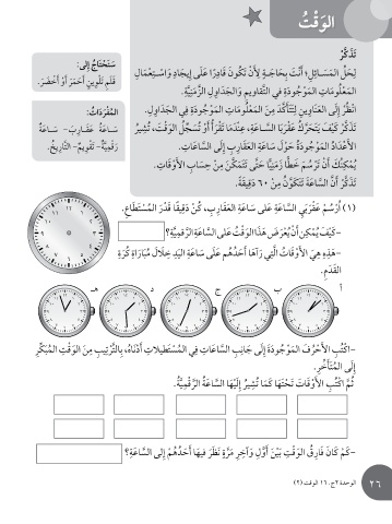 .ُةيمْقرلا ُةَعاسلا اهيَلإ ريشُت امَك اهَتحَت َ تاَقولأا بُتْكا مُث