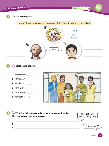 After we , we . 3 Think of three students in your class and write. He's got long,