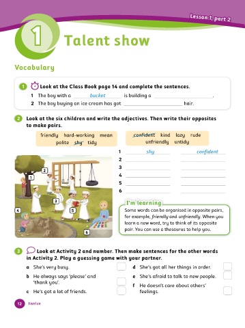 2 Look at the six children and write the adjectives. Then write their opposites