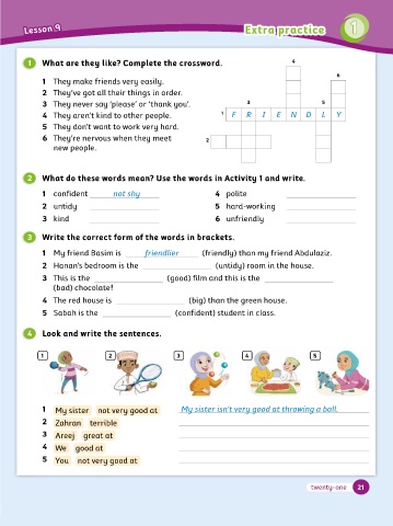 shy / confident / lazy / hard-working / friendly 2 What do these words mean? Use the words in Activity 1 and write.