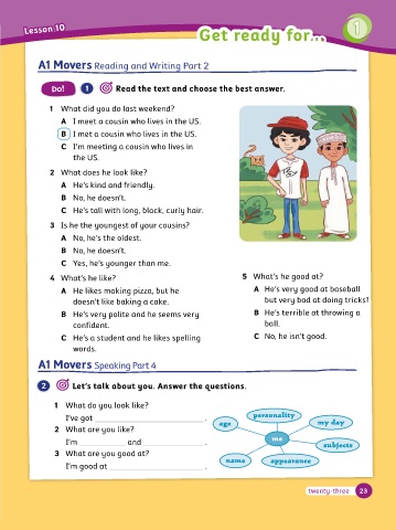 22 2 Read and complete. Qais. You / They enc Long adjectives – superlative in class. Lesson 10 I’m good at Read the text and choose the best answer. for twenty-three 1 1 23