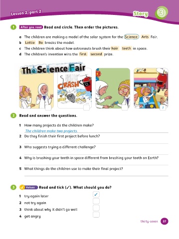 3 3 Let’s explore! 1 After you read Read and circle. Then order the pictures.