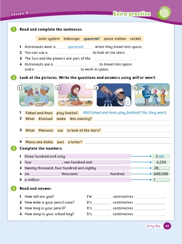 44 forty-four Lesson 9 solar system telescope spacesuit space station rocket forty-five 3 3