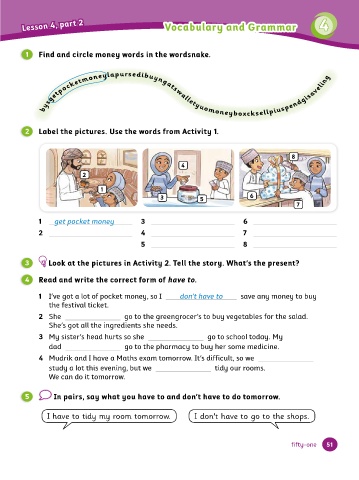 2 Complete the sentences with who, which or where. 4 Read and write the correct form of have to.